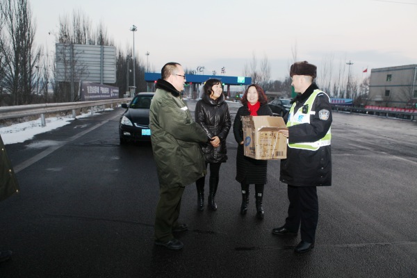 公司領(lǐng)導(dǎo)慰問霧霾風(fēng)雪中堅(jiān)守崗位交警